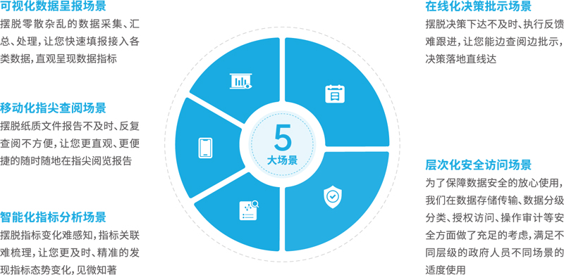 通(tōng)過詳盡的指标體(tǐ)系,實時(shí)反映政府的運行(xíng)狀态,将采集的數(shù)據形象化、直觀化、具體(tǐ)化。